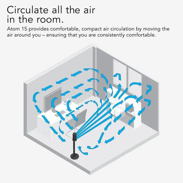 The surprisingly powerful airflow brings substantial circulation anywhere in the home. With Atom 1S, you can also opt for oscillation.
