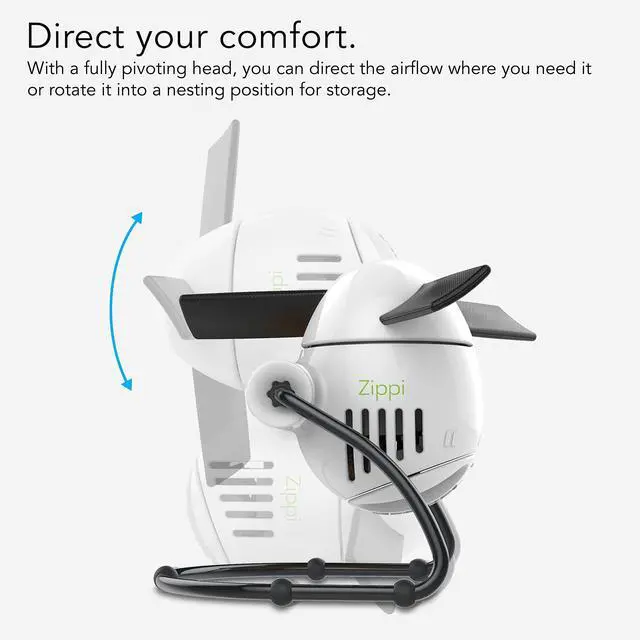 With its 2 speed settings, pivoting head, and quiet operation, Zippi is designed to bring you personal air comfort without disturbing your workspace.