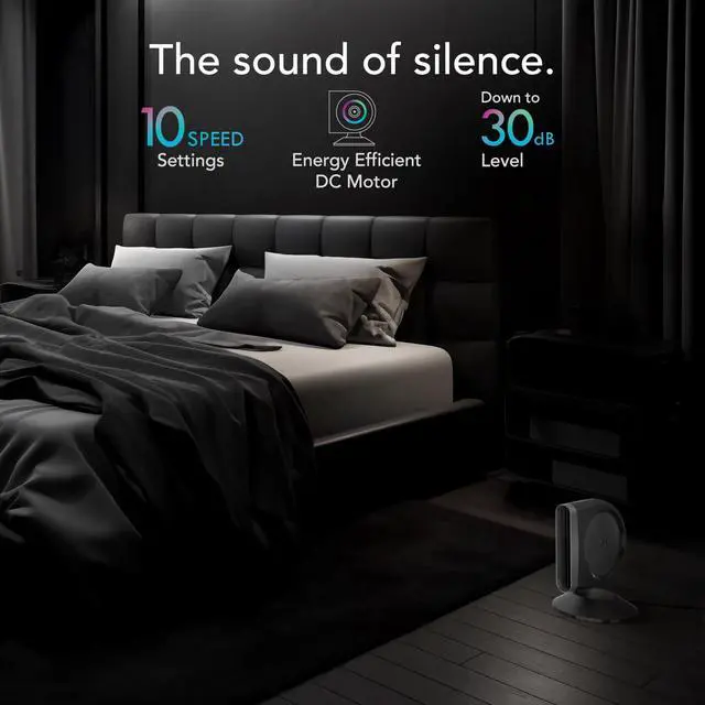 Control Strata from anywhere in the room, select between 10 airflow settings and 2 oscillation settings.