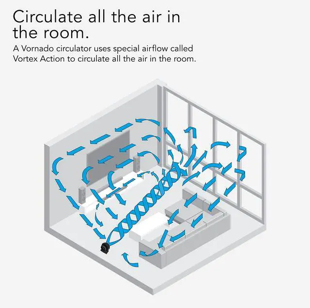 A Vornado circulator uses special airflow called Vortex Action to circulate all the air in the room. The air flows fast, cool and constant to create a cooling experience unlike any other.