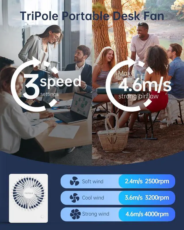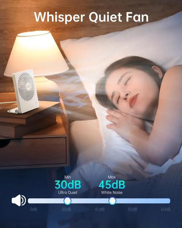 [Quiet & Powerful Fan] Enjoy a refreshingly powerful breeze that reaches a maximum speed of 4.6 m/s for instant cooling. Even at full speed, this small desk fan operates at less than 45 dB