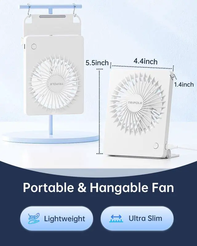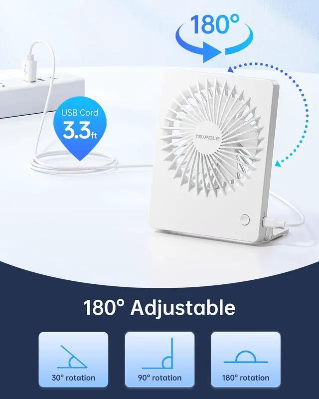 [Flexible Air Direction] The portable fan head has an impressive 180-degree vertical rotation range and a hangable base. This means you can direct the cooling breeze exactly where you need it, whether it's angled up or tilted down for a cooling sensation