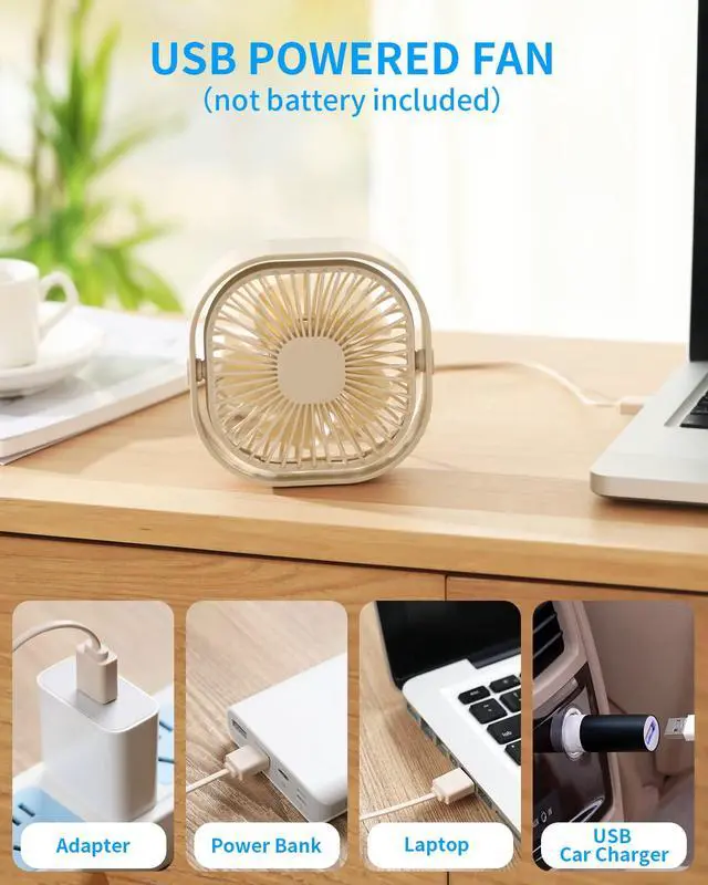 The USB charging cable on the small desk fan is compatible with almost all USB ports. Especially suitable for office, home, dormitory, library, study, yoga studio, game room, etc.