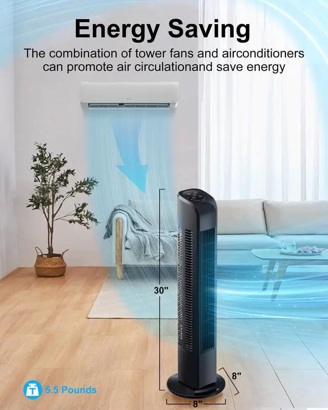 The combination of tower fans and air conditioners can promote air circulation and save energy