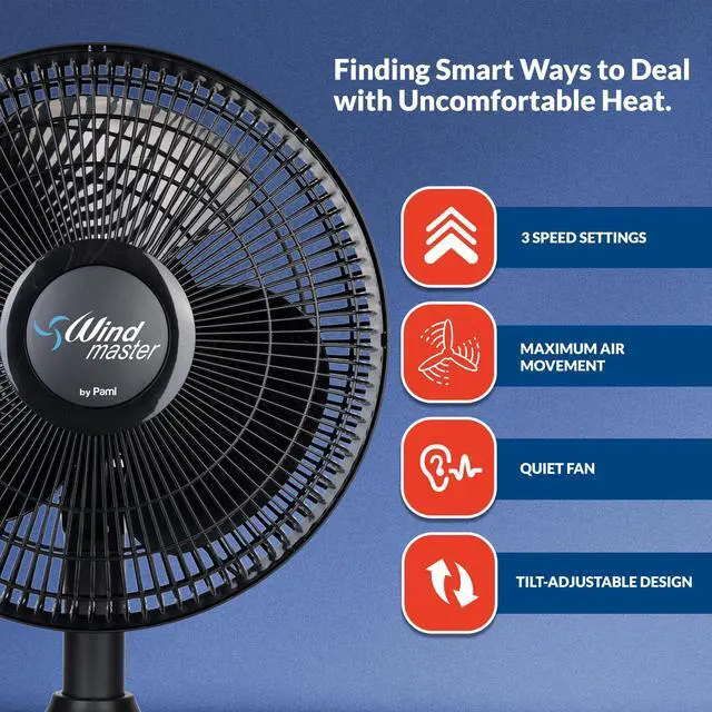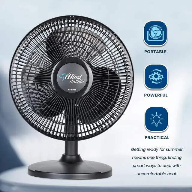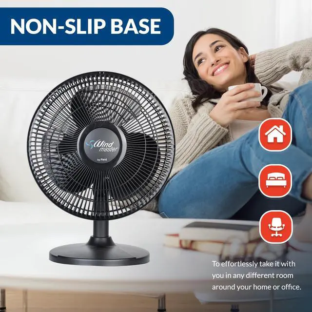 WIDE OSCILLATION TABLE FAN WITH 3 SPEED LEVELS: The PAMI small desk fans allow you to cool down any room in a quick, budget-friendly and effective way. With a powerful motor, large blades and 3 different speed levels our table top fans increase air circulation to help fight unbearable heat in no time. Plus, its oscillating design rotates from side to side blowing fresh air in all directions for maximum cooling results!
