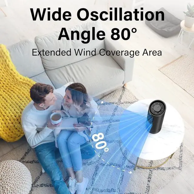 80° Wide Oscillation: The fan features an oscillation range of 80 degrees, enabling rapid and efficient cooling across large spaces while enhancing overall comfort. This wide oscillation ensures even distribution of cool air among family members and guests, offering relief during hot summer days.