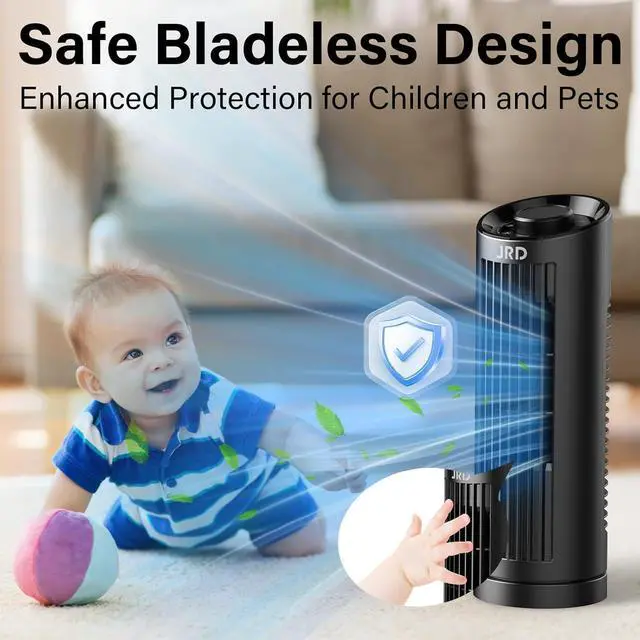 13" Tower Fan for Bedroom, 23ft/s Bladeless Desk Fan with 3 Speeds, 80 Degree Oscillating, Quiet Operation, Compact & Portable Table Fan for Bedroom Home Office Desktop