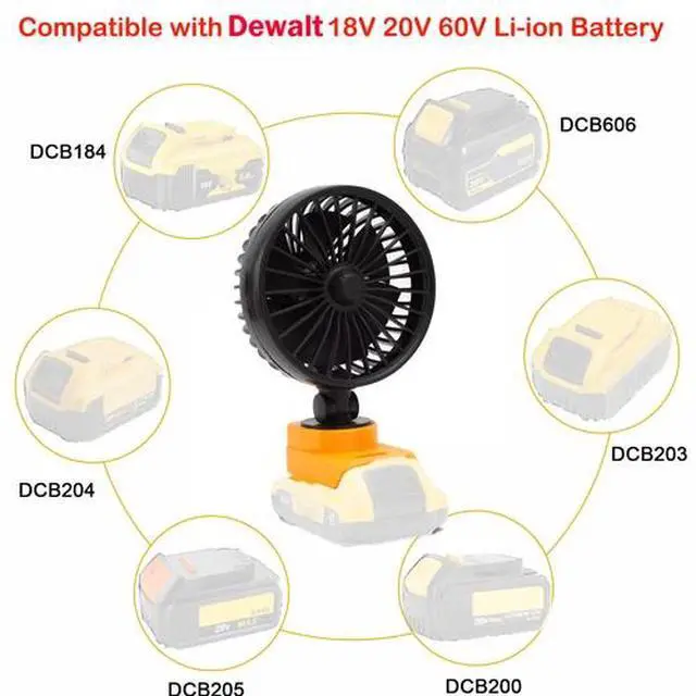 Powerful : High quality motor, max wind speed 10.5ft/s, high speed and low noise, stepless speed regulation. Power Supply: For Dewalt 18V 20V 60V Li-ion Battery Powered