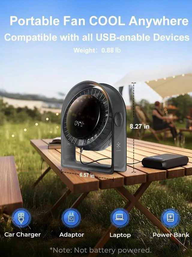 TIPPS: (Type-c) USB Powered Fan. Size: 6.57 × 2.76 × 8.27 inches (L × W × H), similar to a 20 oz Coke.