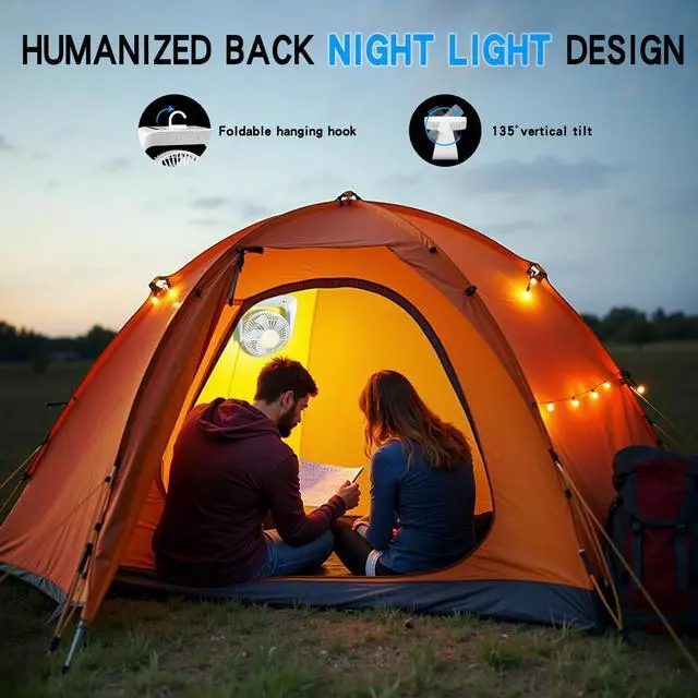 Multi-function FanThis usb rechargeable fan integrates a tent fan, night light and temperature control mode, which can evenly circulate air to illuminate your tent and automatically adjust the gear according to temperature changes, so as to avoid catching a cold when the temperature drops while you are sleeping soundly at night. It is very suitable for camping and many other indoor and outdoor occasions.