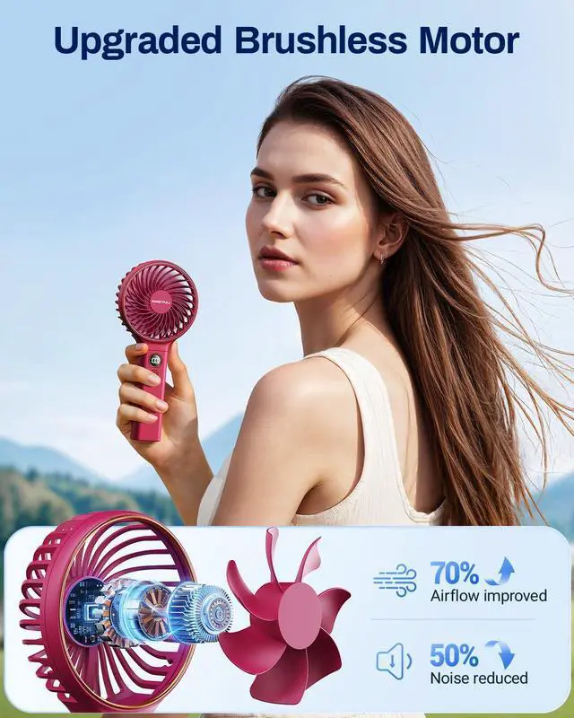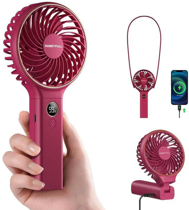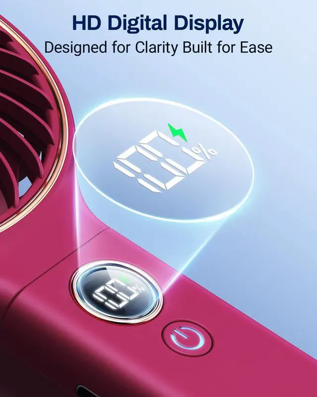 LED Display & 6 Speeds: LED display for real-time gear and remaining power display. Hand-held mini fan with 6 adjustable gears, wind speed is gradually increased from 1 to 6 to meet various usage scenarios, stay cool anywhere