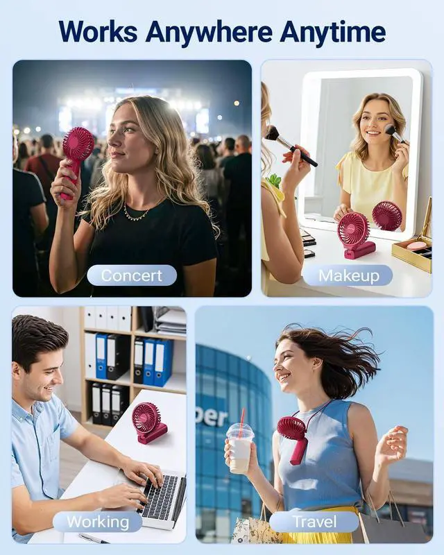Portable & Foldable: This portable fan measures 8.5 x 3.9 x 1.2 inches and weighs 6 ounces. It can be held in hand, placed on a table, or hung around the neck with the provided string for convenient travel