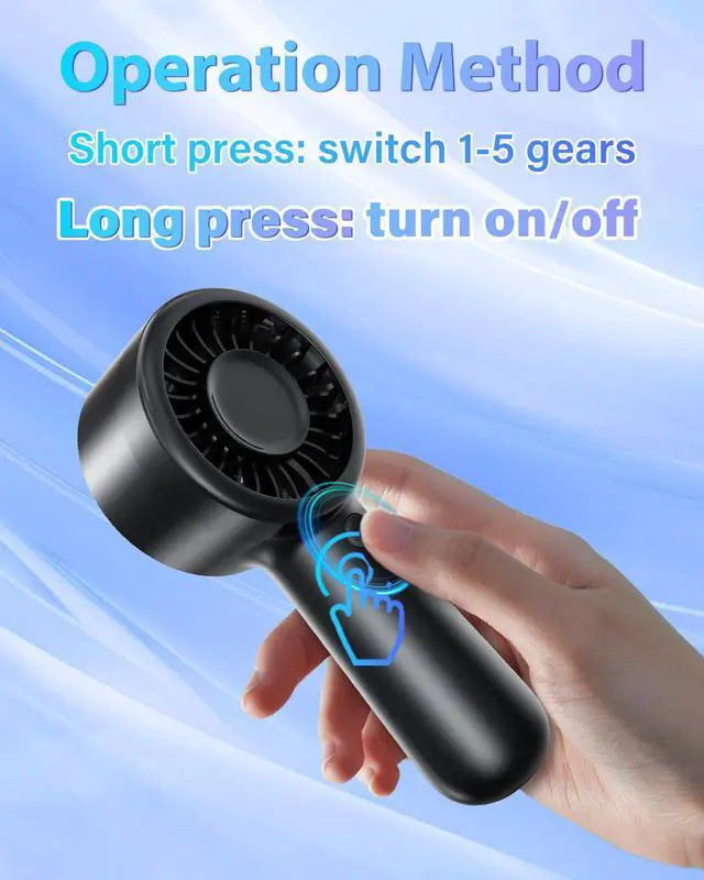 Easy to Operate with 5-Speed SettingsThis handheld cooling fan features one-button control simply long-press to power on/off. With 5 adjustable speed settings, you can easily customize airflow intensity: a short press cycles through wind speeds. Ideal for makeup or skincare, face fan can keep you cool while accelerating absorption and film formation. Or if you are experiencing hot flashes, the fan can help relieve your irritable mood in different environments