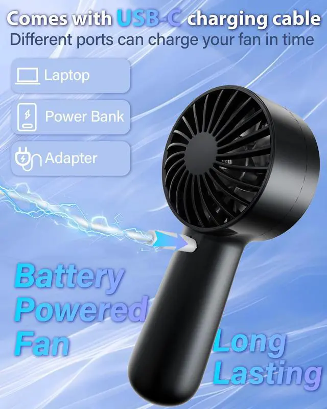 USB Rechargeable Battery FanOur hand held fan is equipped with a reliable rechargeable battery, an extended USB charging cable (35 inches) for more convenient to recharge. This portable fan delivers powerful, stable airflow for instant relief from sweltering, suffocating heat. Simply recharge it to maintain continuous operation whenever needed, and it provides hours of cooling on a full charge. It keeps you feeling refreshed all day, even outdoors on hot summer days