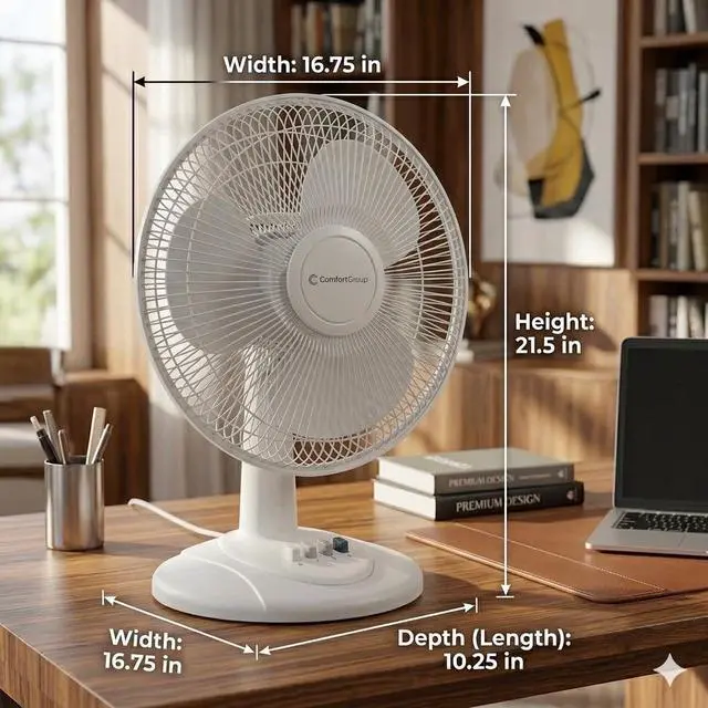 Our fan features an optionaloscillation mode, allowing you to expand air flow horizontally throughout your space. Whether you want to enjoy a gentle breeze while working at your desk or are looking to cool down several guests, the knob-operated oscillation provides ultimate flexibility. Set the fan on a desk, table or nightstand, push the oscillation knob and you're on your way to ultimate comfort and efficient air circulation.