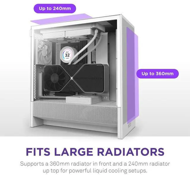 H5 Flow 2024 - Compact ATX Mid-Tower PC Gaming Case - High Airflow - 2 x 120mm Fans Included - 360mm Front & 240mm Top Radiator Support - Cable Management System - Tempered Glass - White