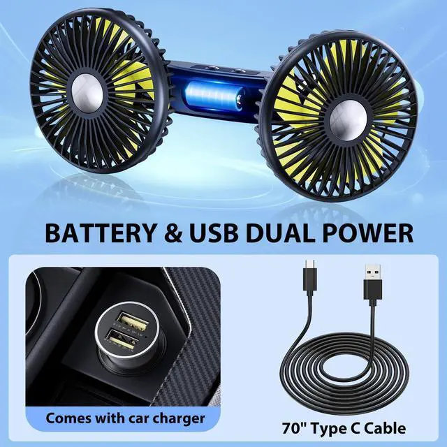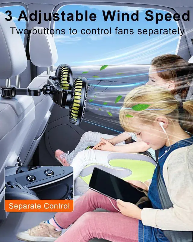 ![Alt view image 4 of 6 - Battery Fan for Car Backseat - Rechargeable Car Fan for Backseat Kids Dogs [Comes with Car Charger&USB C Cable] 360 Rotatable Separate Control Car Fans That Blow Cold Air for Vehicles SUV RV](https://c1.neweggimages.com/productimage/nb640/C61MD2604060EUNHI94.jpg)
