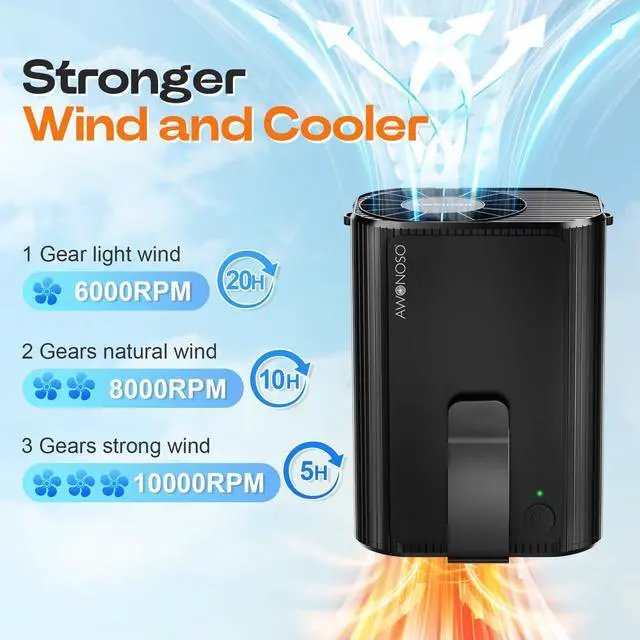 3-Speed Powerful Brushless Motor: Equipped with a high-performance 10000 RPM brushless motor and a 5-blade turbine fan, this portable fan offers three adjustable speeds, allowing you to switch between a soft breeze and a powerful gust. With airflow reaching up to 30 feet per second, it provides fast and effective cooling in any situation, ensuring you stay comfortable all day long.