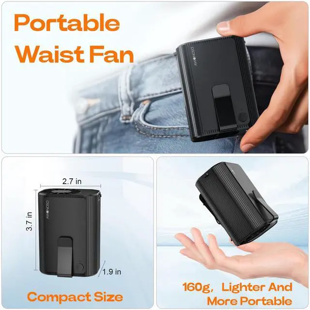 Durable ABS Material: This compact waist fan is made of high-quality ABS material, ensuring long-lasting durability. Its shock-resistant design offers 300% protection, allowing it to keep working even if dropped from a height of up to 10 ft. Whether you're hiking, camping, fishing, or working in tough environments like construction sites, this fan provides all-day cooling to keep you comfortable.