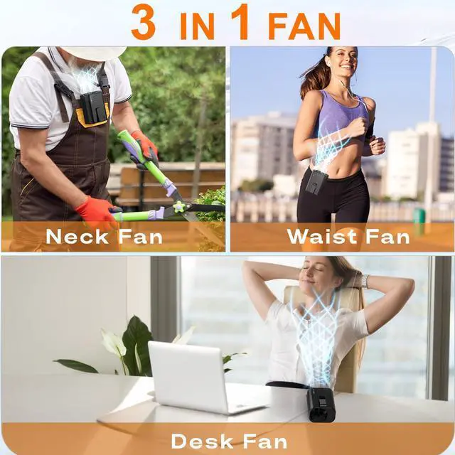 AI Portable Personal Waist Neck Rechargeable Fan, 3-Speed 10000RPM Brushless Motor Desktop Fan Hands-Free Neck Hanging Fans, 20-Hour Runtime, Wearable Portable Fans for Camping and Worksites