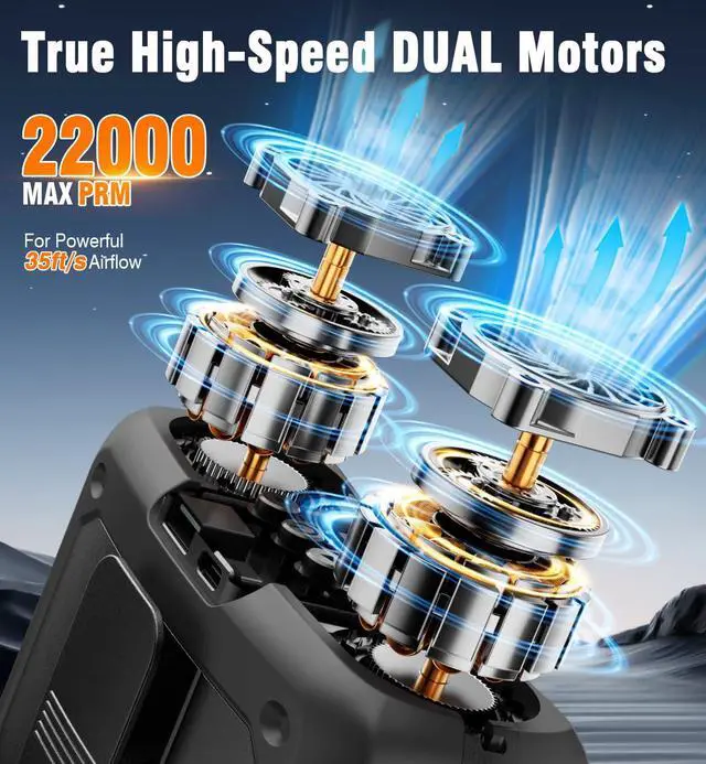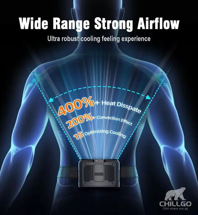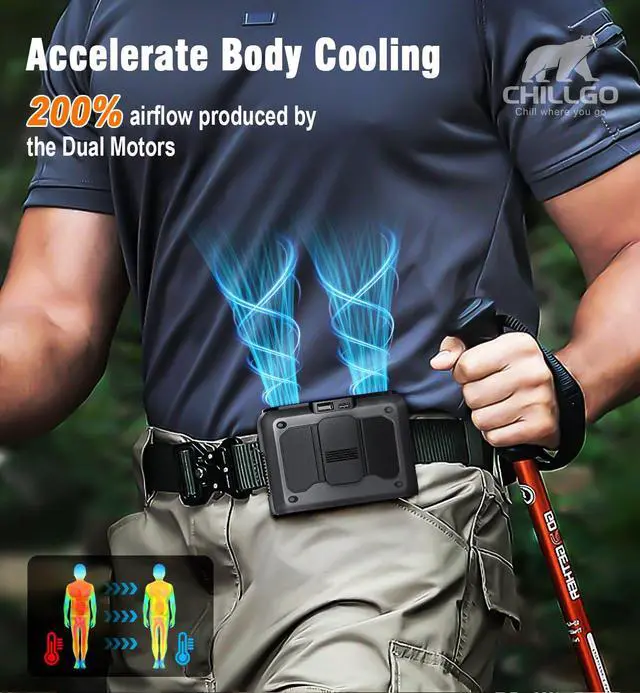 Dual Motors, Strong Breeze - Powerful dual motors, this portable waist fan significantly enhanced wind speed: Powered by dual motors, this portable fan is durable. With an upgraded airflow channel, the wind speed can reach 2 - 4 times stronger, providing a more refreshing experience