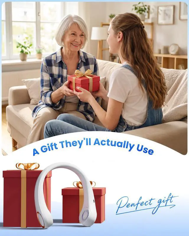 Stylish Gift Choice: Available in white, black, pink, and navy blue, this compact, powerful, and stylish neck fan is ideal as a gift for women, men, or teens. A practical and thoughtful pick for Mothers Day, Fathers Day, birthdays, or any summer occasion
