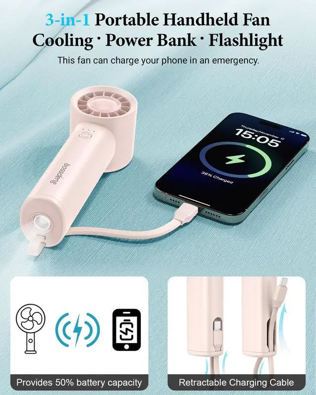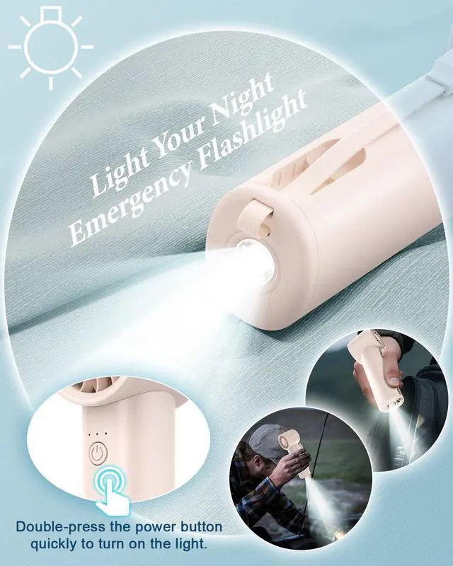 Compact yet powerful: This handheld fan integrates a fan, hand flashlight, and backup power bank into oneIts integrated lanyard also serves as a USB-C data cable, making it an essential companion for staying cool during the hot summer days. With its versatile functions, it caters to a wide range of your needs.