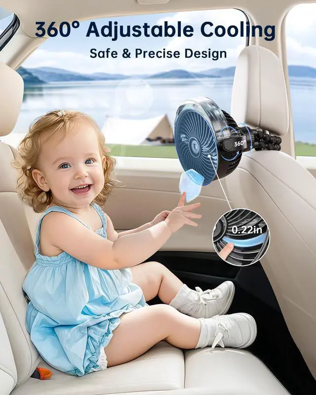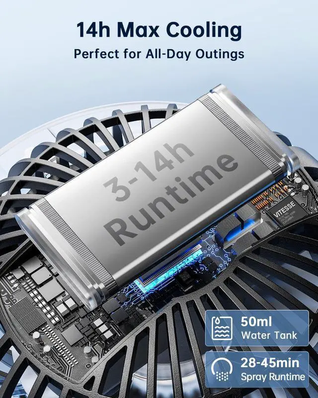 4-Speed Wind & All-Day Battery: Choose from 4 wind speeds (5.111.9 mph) to match any temperature. The 3000mAh battery powers the fan for 3 to 14 hours, making it an ideal rechargeable fan for travel, stroller, or car seat use