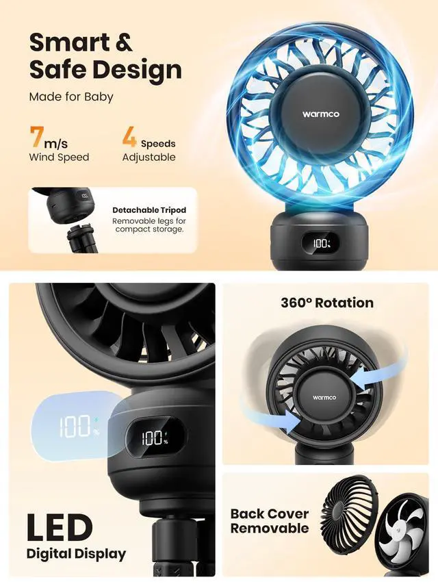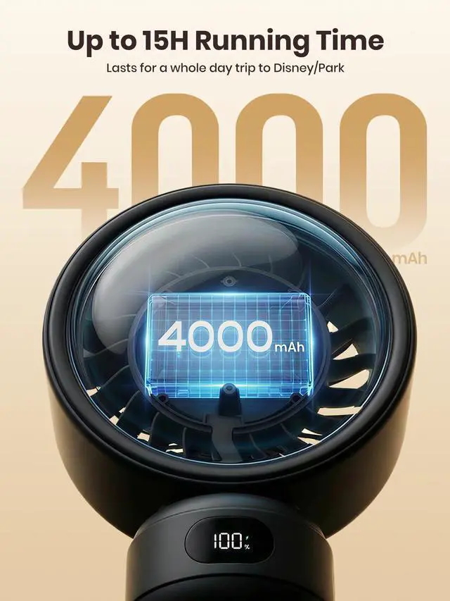 15H LONG-LASTING BATTERY & LED DISPLAYPowered by a robust 4000mAh battery, this battery powered fan delivers up to 15 hours of continuous cooling. As a premium rechargeable fan, it is perfect for long walks and baby travel. The smart LED digital display shows the exact battery percentage and speed gear in real-time, eliminating power anxiety so you always know when to charge your battery fan via the USB-C port. A true must-have among baby travel essentials.