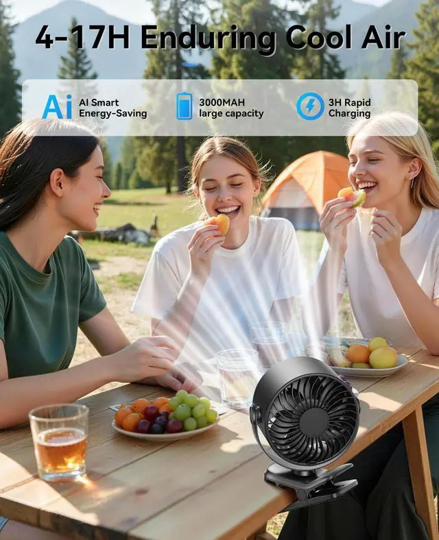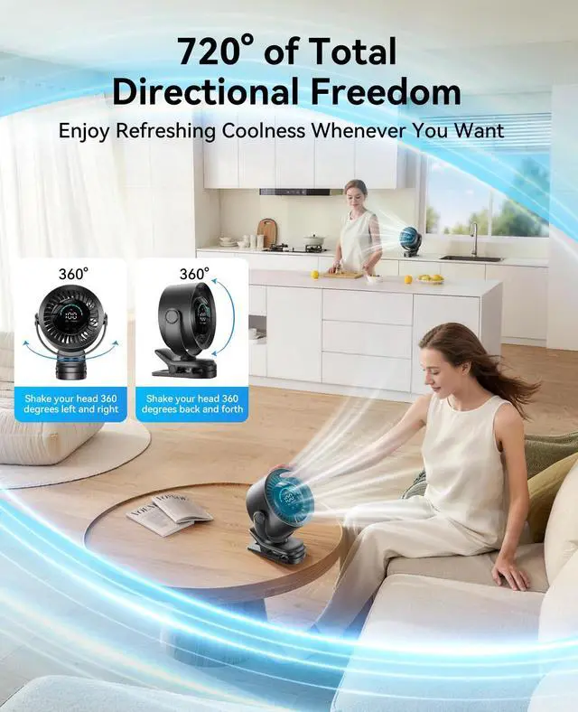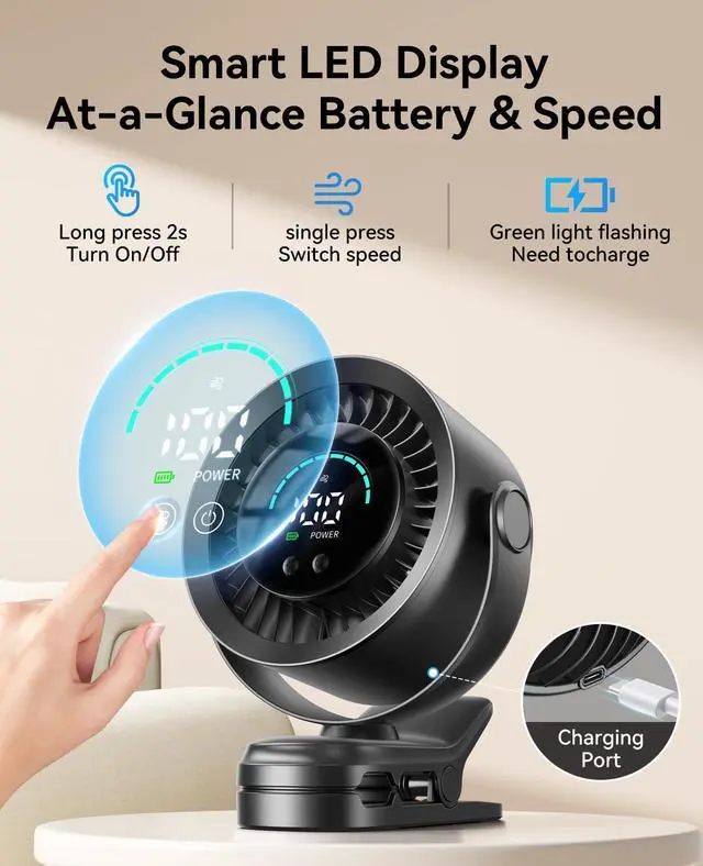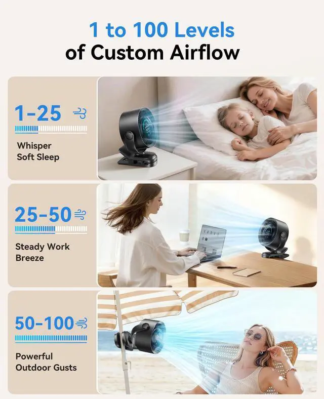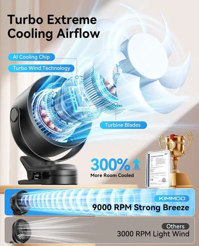 KIMMOO Rechargeable Portable Clip Fan-100-Speed Turbo Wind