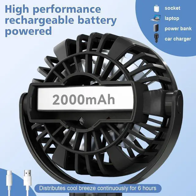 High-performance rechargeable batteryThis rechargeable battery powered stroller fan is powered by a built-in 2000mAh rechargeable battery. Depending on the different speed settings, it can provide continuous usage for up to 6 hours at the highest speed, offering you a long-lasting and stable cooling experience without the need for frequent recharging, making it convenient and practical.