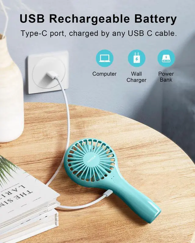 This rechargeable fan is in a lollipop design, very cute and novel, the handle is non-slip, designed in suitable length and width that is very easy to hold even by toddler. We add several colors to enrich your choices, free to choose one that match your summer~