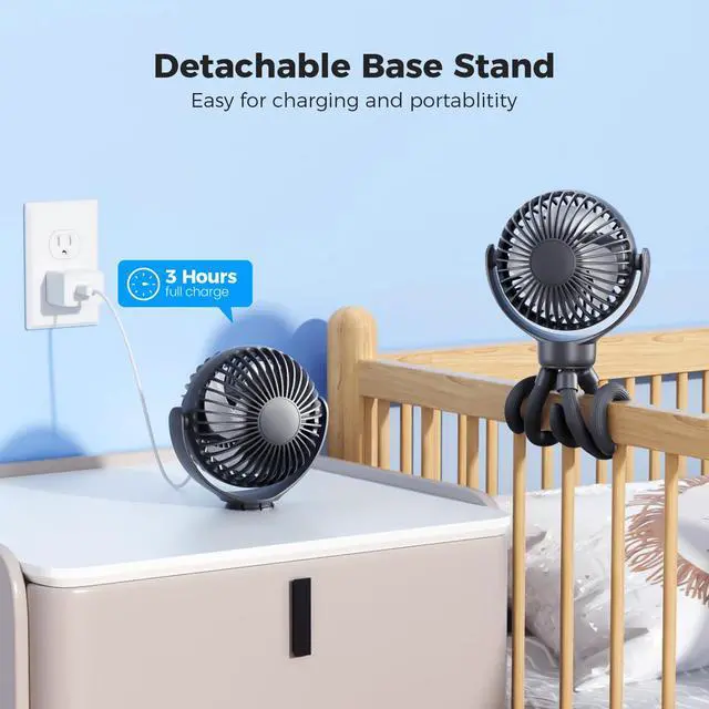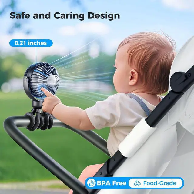 Portable & Easy to Use: Designed for versatility, this lightweight (0.53 lbs) stroller fan rotates 360° in all directions and can be fixed or placed anywhere, ideal for strollers, cribs, car seats, desks, handheld, labor and delivery rooms, bikes