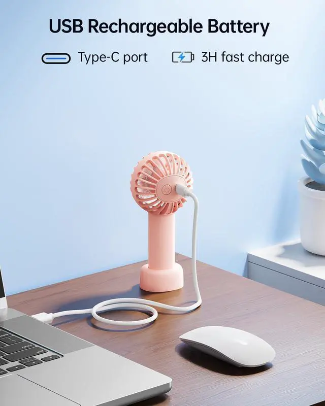 Mini Portable Fan - Rechargeable Handheld Fan, 3 Speeds Personal Small Hand Gifts for Travel Essentials, Lash, Makeup, Eyelash, Kids, Girls, Women - USB, Cute Design Pink