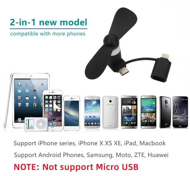 TRIIFON 2-in-1 mini cell phone fan fits for iPhone, iPad and Android Cellphones with type c/usb c port! Just plug and play! Very convenient and useful for fast cooling in hot summer. Great as a gift for friends and families.