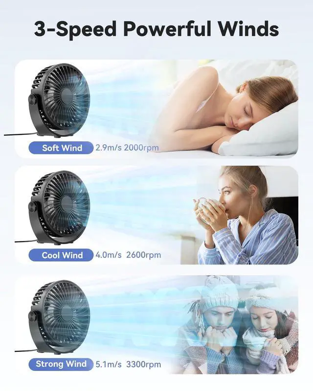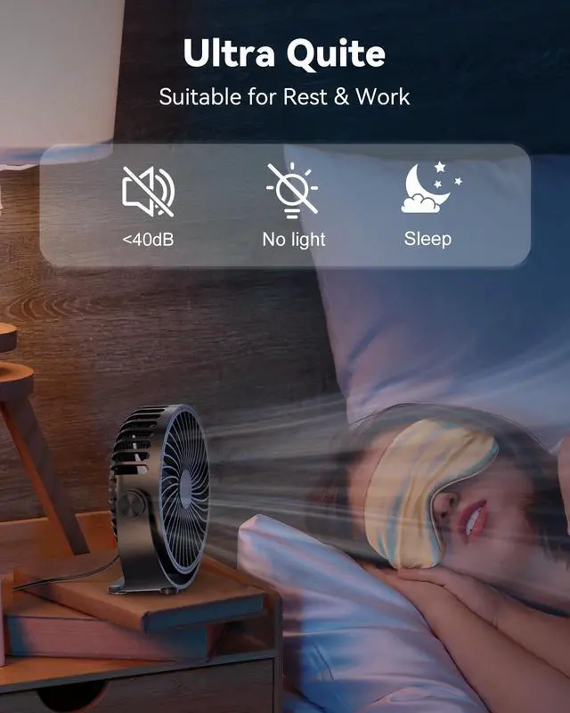 The cooling desk fan is equipped with a new brushless motor that not only lasts longer, but also delivers more wind power than ordinary motors, less noise in operation.