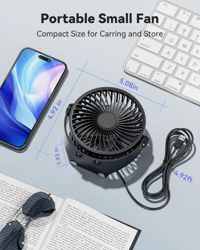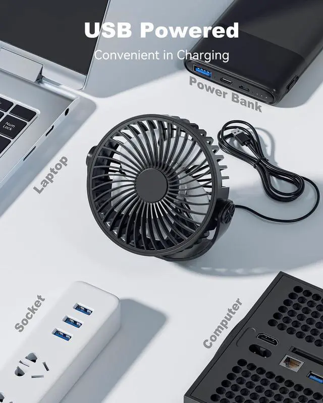Weighing only 0.34lb, the mini USB Fan fits in almost any pocket or bag. Wherever you go, this portable table fan is the ideal summer companion to keep you cool while travelling
