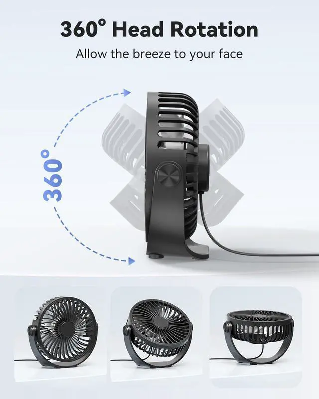 This electric desktop fans can be tilted 360°, so that you can adjust the most comfortable angle and get the breeze right where you need it.