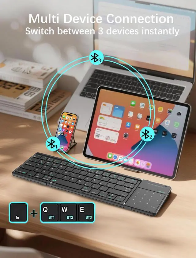 Its compact tri-fold design saves considerable desk space, making it the perfect companion for work and entertainment anytime, anywhere.