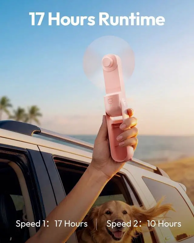 10-17H Cooling Time: With up to 17 hours of cooling time, this handheld portable fan is ideal for outdoor adventures like travel, camping, hiking, or daily use like concert, commute, wedding, party, office, school, keeps you enjoy all day cooling. Conveniently rechargeable via USB-C