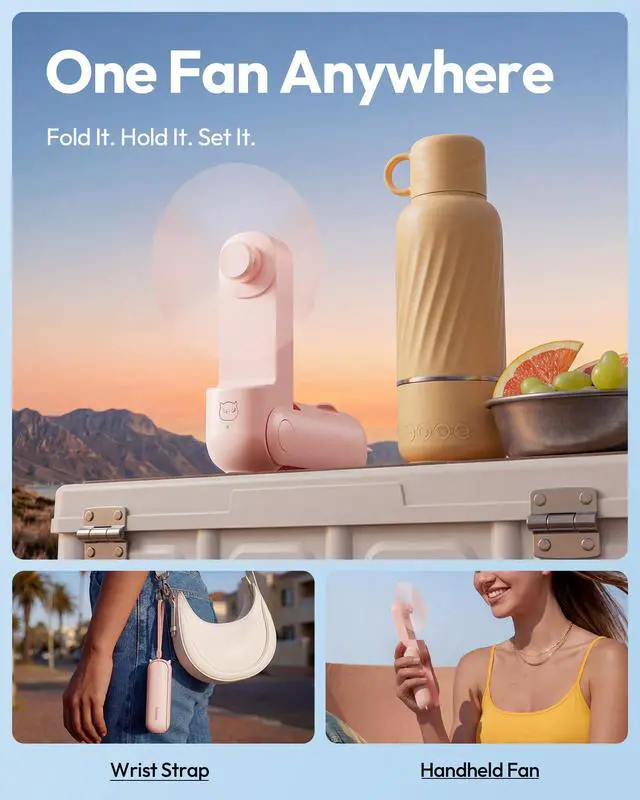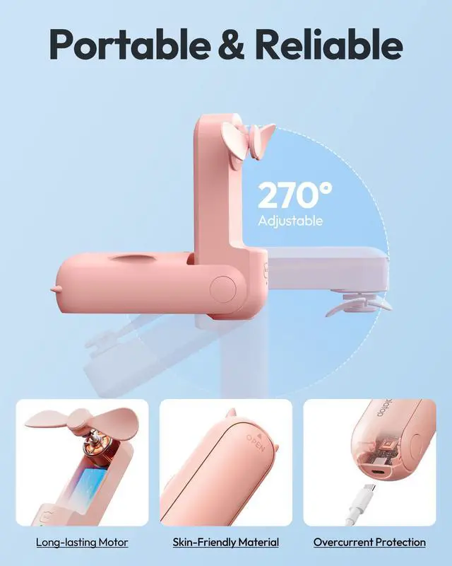 Powerful Breeze, Wide Airflow: The mini portable fan delivers strong airflow to cool you fast, powered by a high-efficiency brushless motor and expanded blades, making it a summer essential and perfect travel accessories. This small portable fan runs quietly and supports use while charging no more battery worries