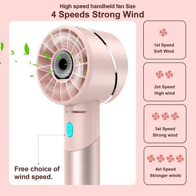 4 LEVELS WIND SPEED: The Lepwings handheld fan high-performance fan has 4 adjustable wind speeds with a speed of up to 7000 revolutions per minute. Whether you need a gentle breeze or strong wind, this small fan will meet your needs on hot summer days.
