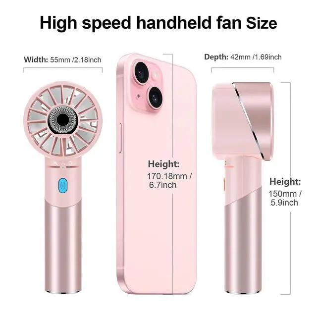 COMPACT AND LIGHTWEIGHT DESIGN: handheld fan measures only 5.82 inches in height and weighs just 0.36 pounds, which makes it extremely compact and lightweight. Put it in your bag or backpack and carry it anywhere - perfect for travel, outdoor activities, office use and much more.