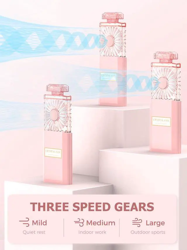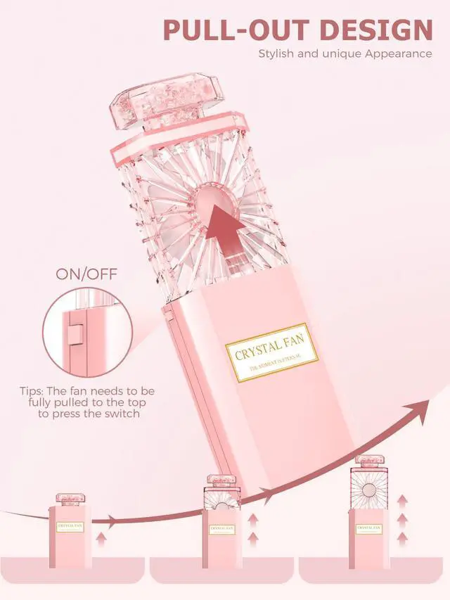 Inspired by perfume bottles, the hidden pull-out design make handheld fan looks fashion unique, suitable for girls, women and ladies.