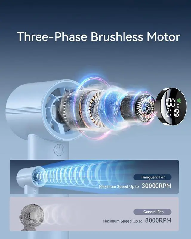![Alt view image 6 of 7 - Portable Handheld Fan, Speed(1-199) Powerful Turbo Mini Fan, 30000 RPM High Speed Moter [14H Max Cooling Time] 5000mAh Battery Rechargeable,Pocket Personal Small Travel GIfts for Women Men,Light Blue](https://c1.neweggimages.com/productimage/nb640/C67GD2604190YA5SP85.jpg)