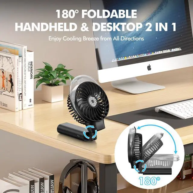 3 Powerful Speeds: The handheld fan has the upgraded brushless motor and 3 aerodynamic blades produce up to 11.5 ft/sec of cool air; the personal fan is equipped with 3 speeds to meet the needs of different seasons