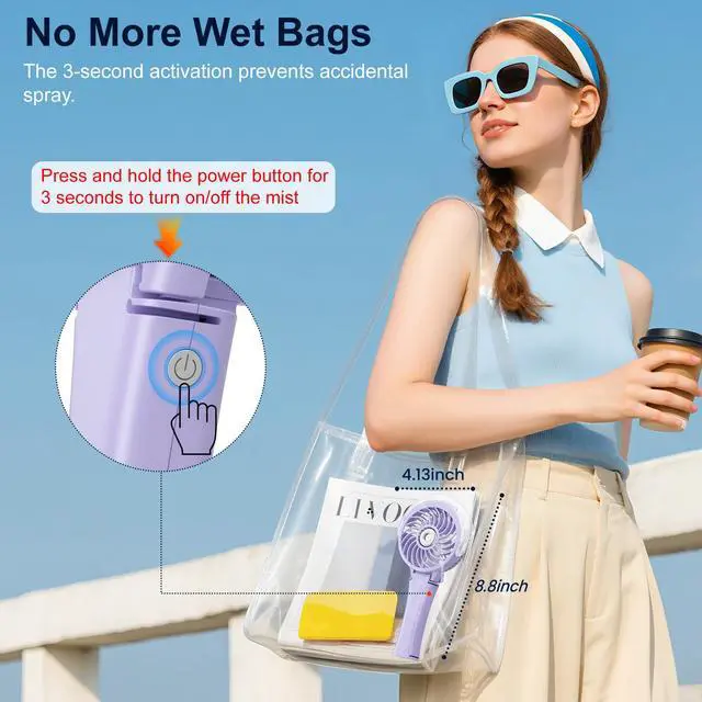 PLEASE NOTE: Press and hold the power button for 3 seconds to turn on/off the misting.