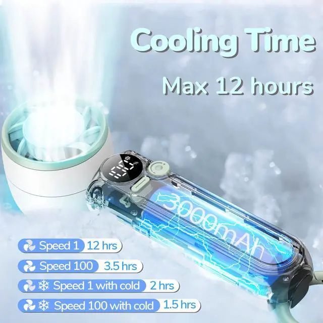 Long-Lasting Rechargeable Fan with LED Display: Powered by a 3000mAh rechargeable battery, this fan runs for up to 12 hours(Speed 1) on a full charge. The LED screen displays wind speed and battery status.