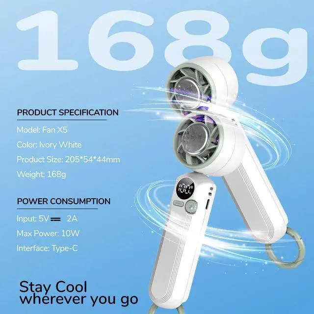 Multi-Use Foldable Handheld Fan: Designed for on-the-go cooling, the built-in hook allows you to attach it to your backpack or wear it with a lanyard for hands-free use. It also folds into a desktop fan, making it ideal for outdoors, travel, hiking, commuting, gym workouts, office, or bedside cooling.