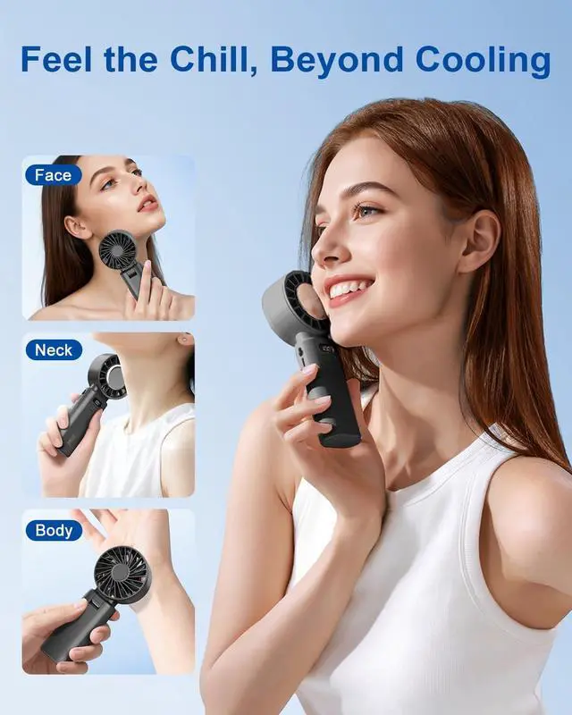 3-in-1 Foldable Design Use it as a foldable handheld fan, a desktop fan, or a neck-hanging fan. This portable fan handheld design adapts to every lifestyle: travel, gym, home, or office.